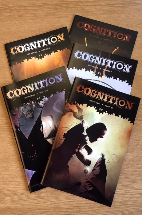 Cognition black & white, supernatural adventure comic that follows the exploits of a steam-powered automaton inhabited by a human spirit called Cal and a demonically possessed mouse named Sigma. They battle spirits, monsters and folkloric nasties for the British Occult Secret Service (BOSS) during the ‘Golden Age’ of the Victorian era.